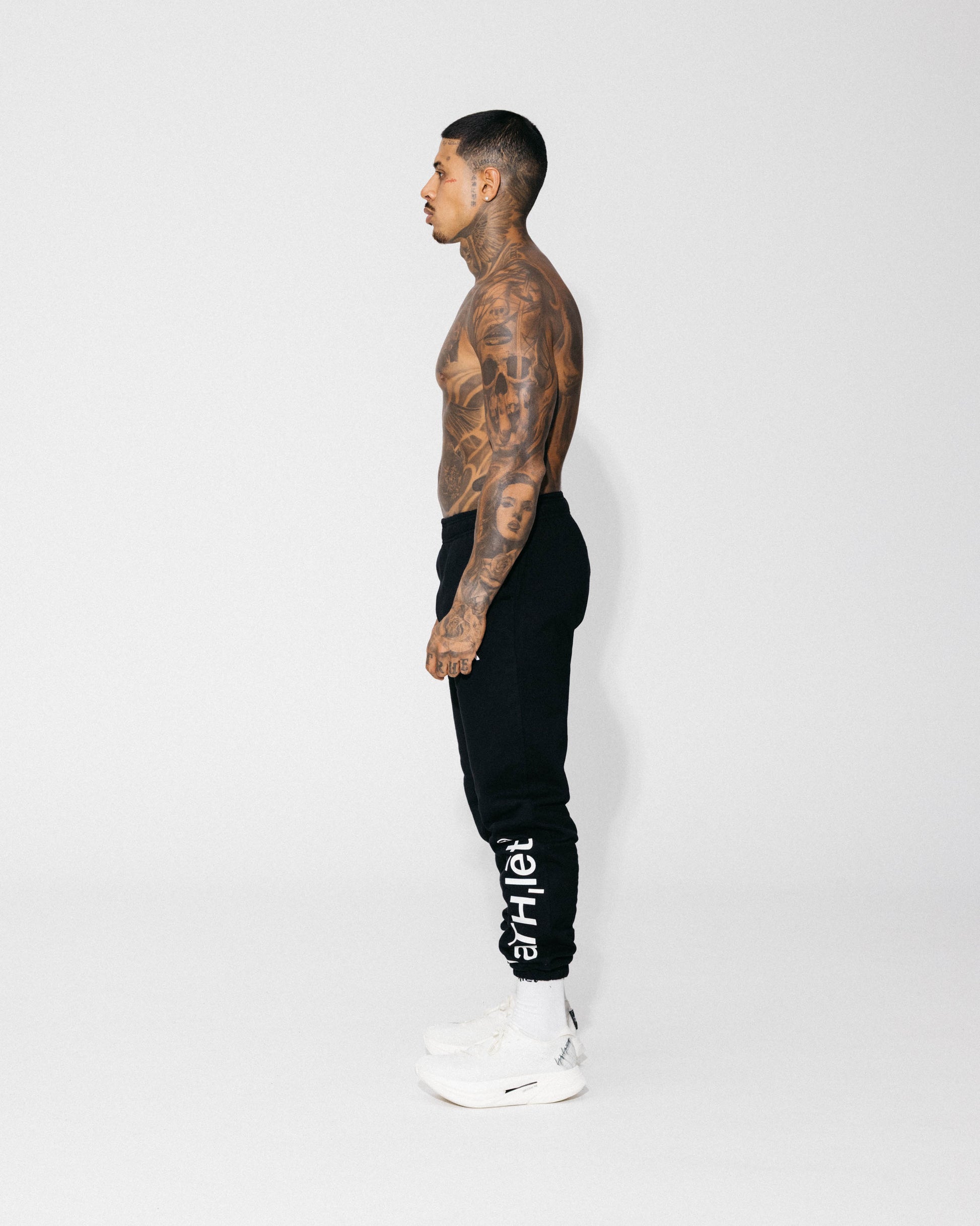 A heavyweight sweatpant in a structured regular fit, lined with brushed fleece for superior warmth and comfort. Finished with an elasticated waist and hem, signature aTHlet print at the leg, and a custom rubber badge at the back pocket—merging elevated detailing with everyday utility.