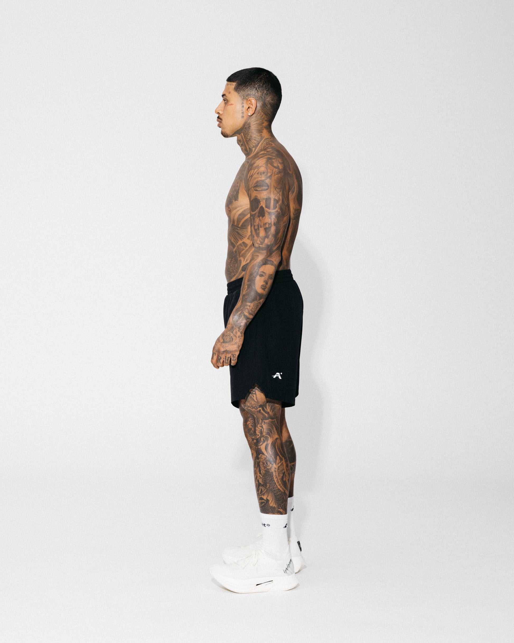 A performance-driven short in a regular fit, crafted from lightweight fabric with breathable mesh lining for focused comfort. Featuring an elasticated waist, secure zip pocket, and signature aTHlet branding—engineered for movement, finished with refined detail.