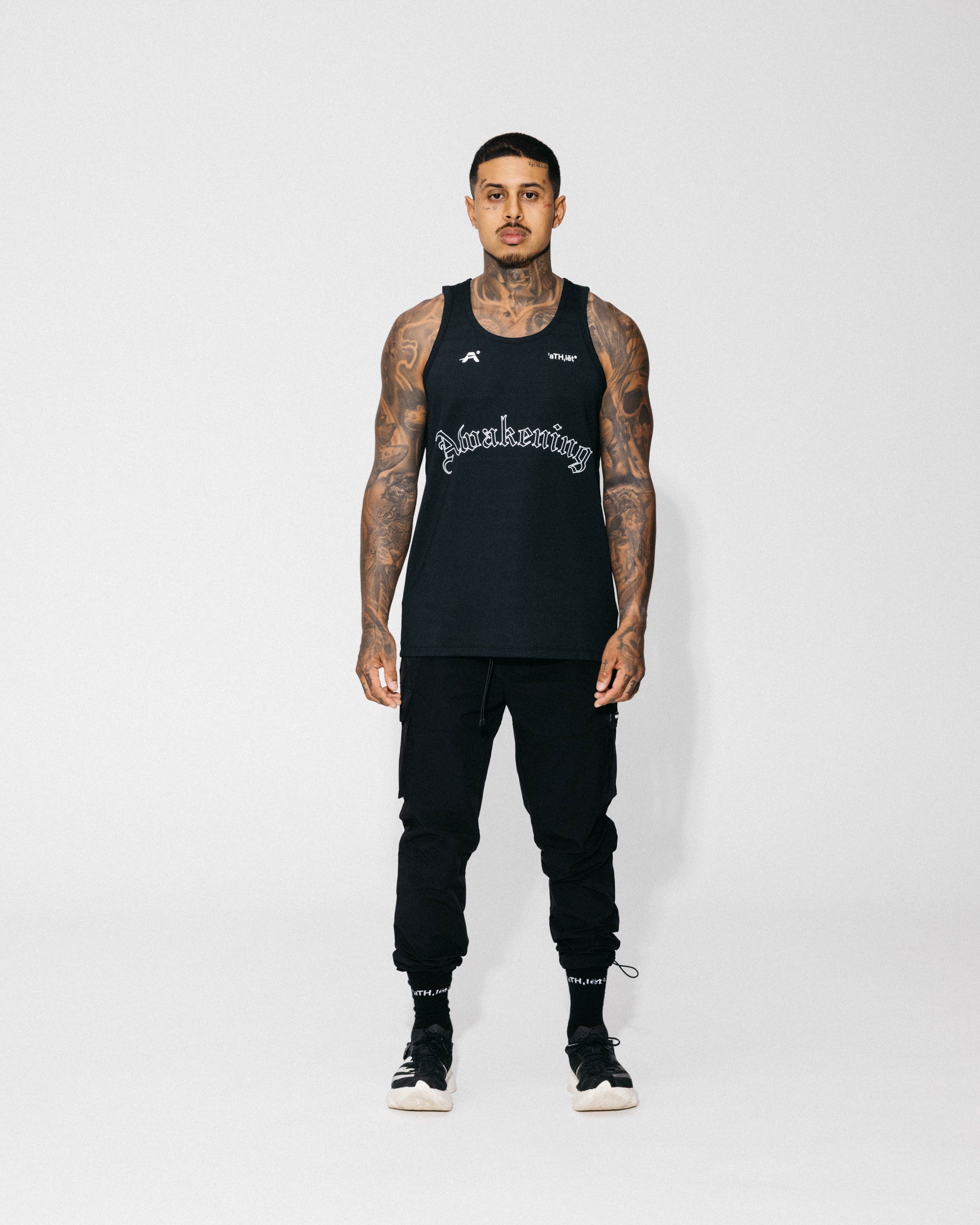 A lightweight training singlet in a regular fit, crafted from lightweight sports fabric, ensuring optimal breathability and freedom of movement during workouts. Its signature aTHlet print detail on both the front and back combines style with performance, making it an essential piece for serious training sessions.